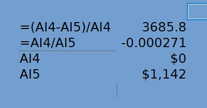Explain what? Your AI4 is about 3685.8 times smaller in magnitude than your AI5; it is about -0.31. The cell is formatted to round to whole.