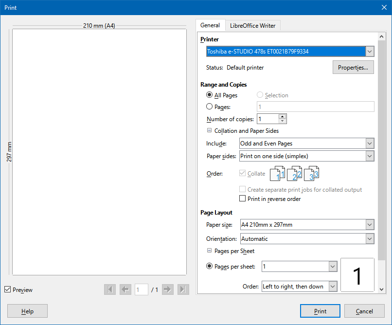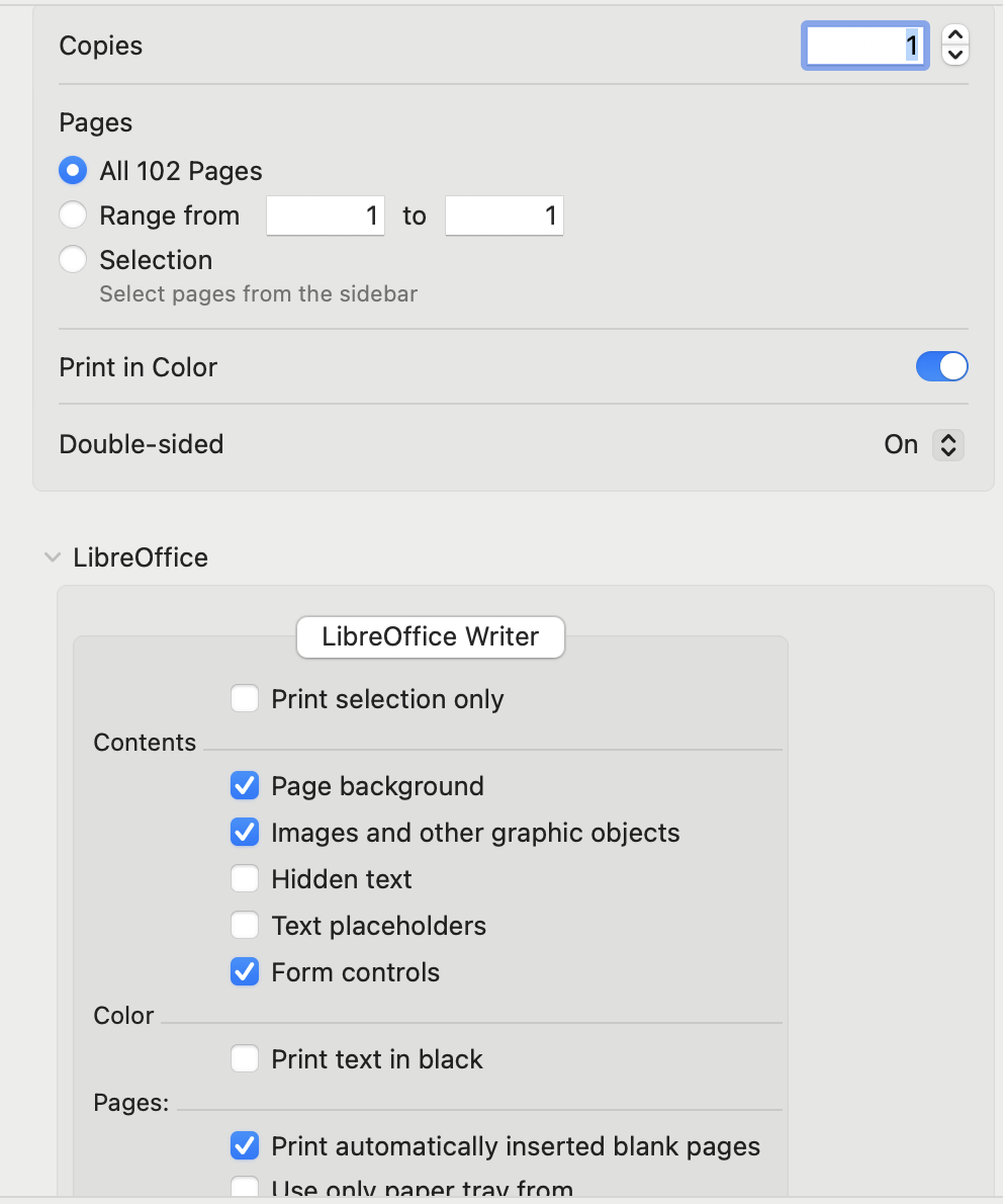 I have changed the setting to the size of the paper, but the printer simply replies that it isn’t the size noted, when it is. The print comes out the same, properly aligned on the first page, and messed up every page thereafter. There must have been a change to libre the last six months because prior to that it printed as it looks on the page.
