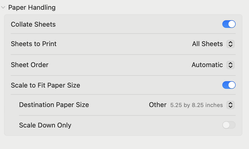 when I put smaller paper in the printer 5.25"x8.25", my ubuntu computer prints it properly as long as the text is set properly. libreoffice on my mac, the printer acts like the paper is on a reel, and every page is imbalanced differently. I am trying to format for printing of poetry books. Mac will print both sides, Ubuntu will not, so I want to get the mac working. Thank you