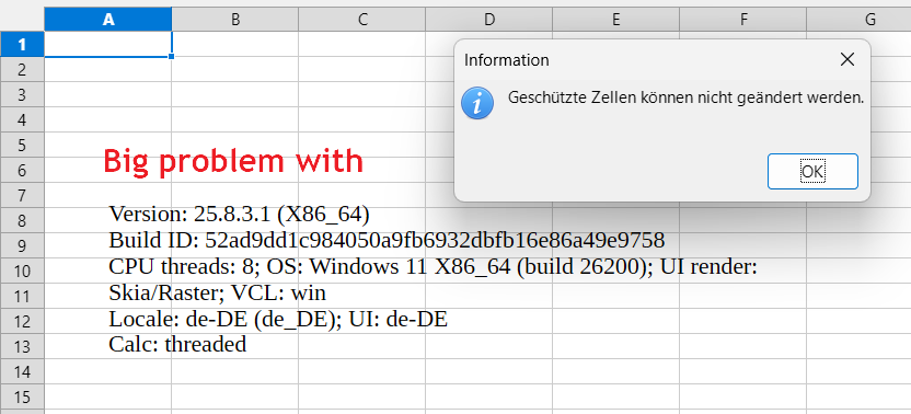 In a .xlsx. or .odt fin using CALC, when I try to transpose a selection, a message appears stating “Protected cells can not be changed”