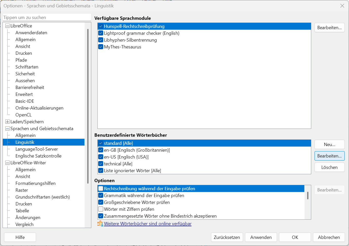 Und dann schau mal unter Extras>Optionen>Sprachen und Gebietsschemata>Linguistik,