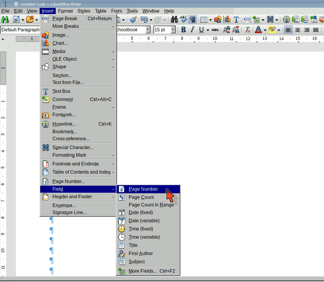 To Insert a Page Number