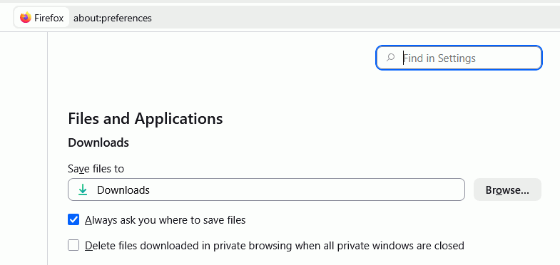 - Click Downloads and change Location there, maybe also turn on Ask every time