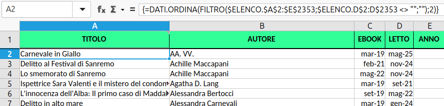 DA LEGGERE (Ordinati per autore). Formula matriciale in A2: