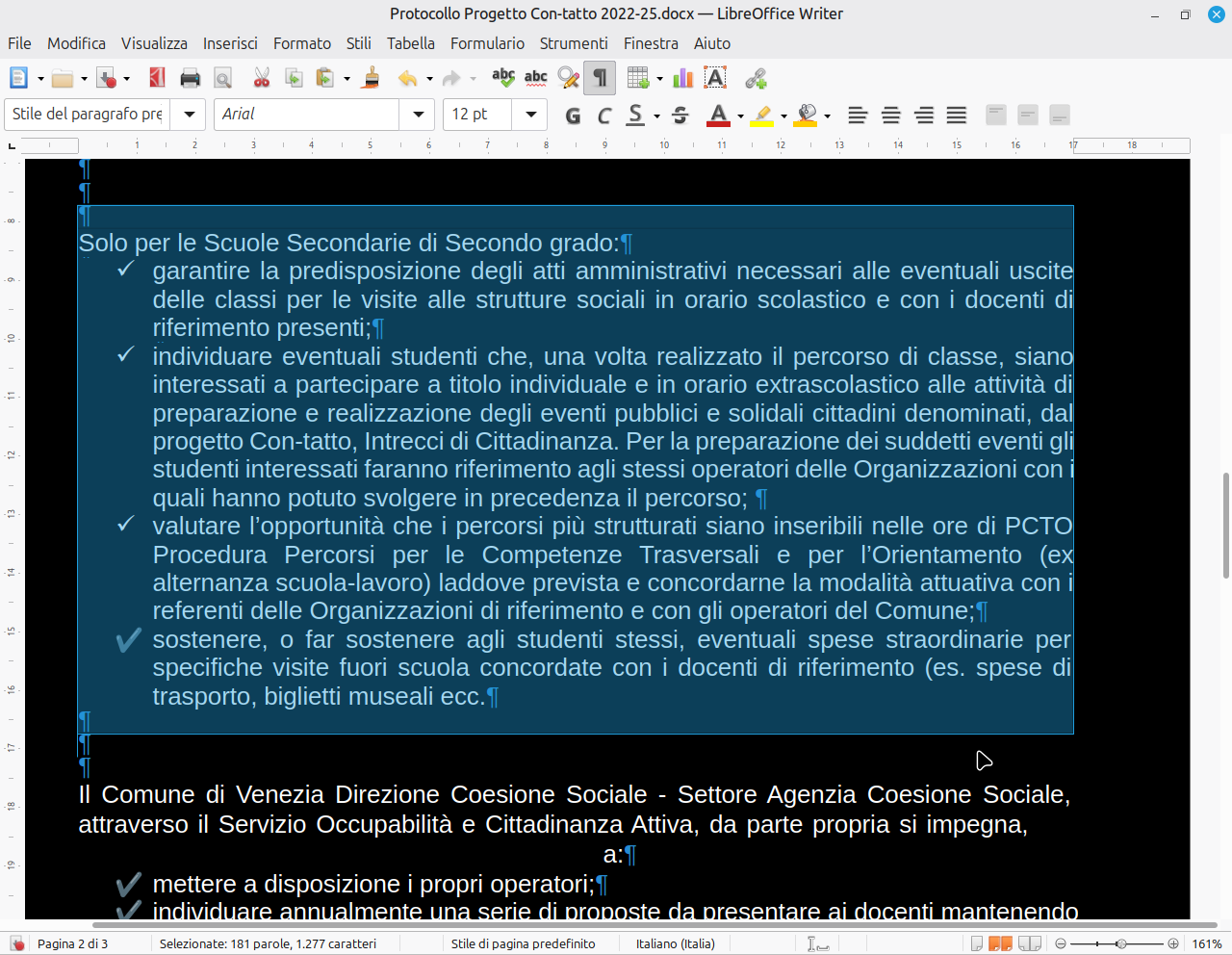 Ho controllato che non ci sia un’immagine di fondo e che non sia una tabella (anche se il fondo della tabella dovrebbe conformarsi, per default, al testo ordinario, credo): Protocollo Progetto Con-tatto 2022-25.docx (14.1 KB)