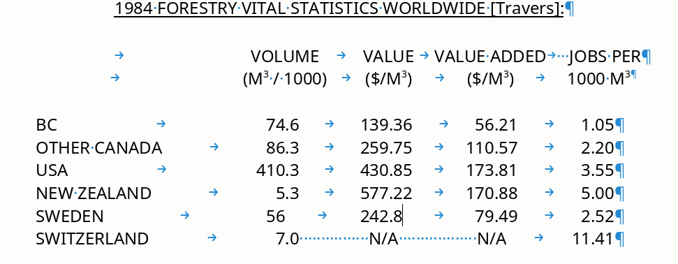 … I’d like to make it into a table if possible, OTOH using the tab ruler is perfectly satisfactory anyway so it’s not like I’m stuck or anything. BTW, I tried ‘right padding’ but the results were bizarre, the cells got taller and the numbers sorta wrapped inside the cell – couldn’t make any sense of it.