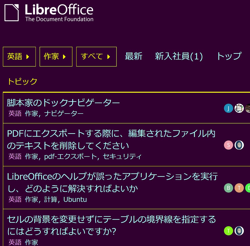 ▼手順1▼LibreOfficeのコミュニティのホーム画面を出す(左上LibreOfficeの所をクリックで出る)▼