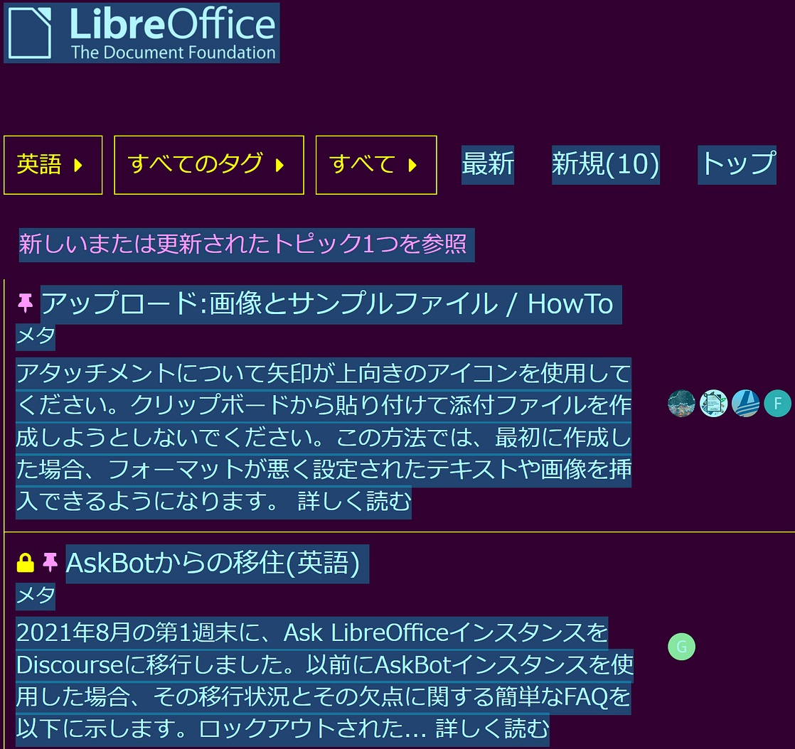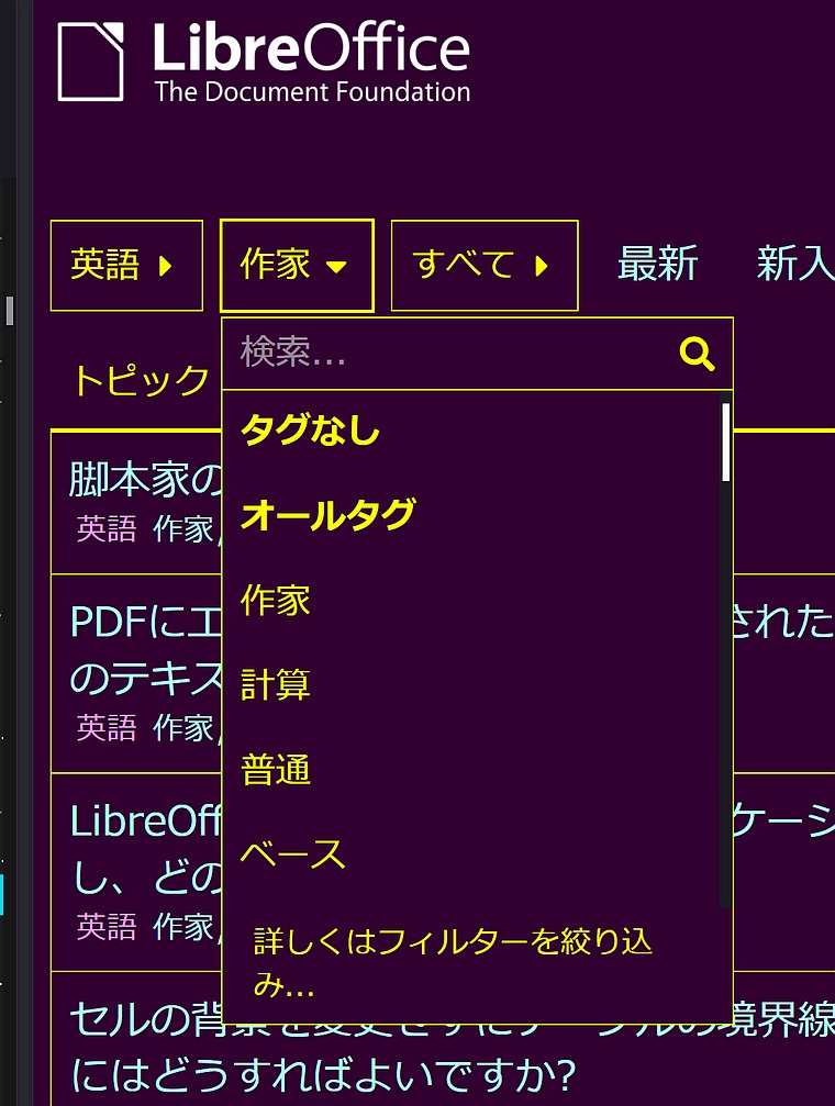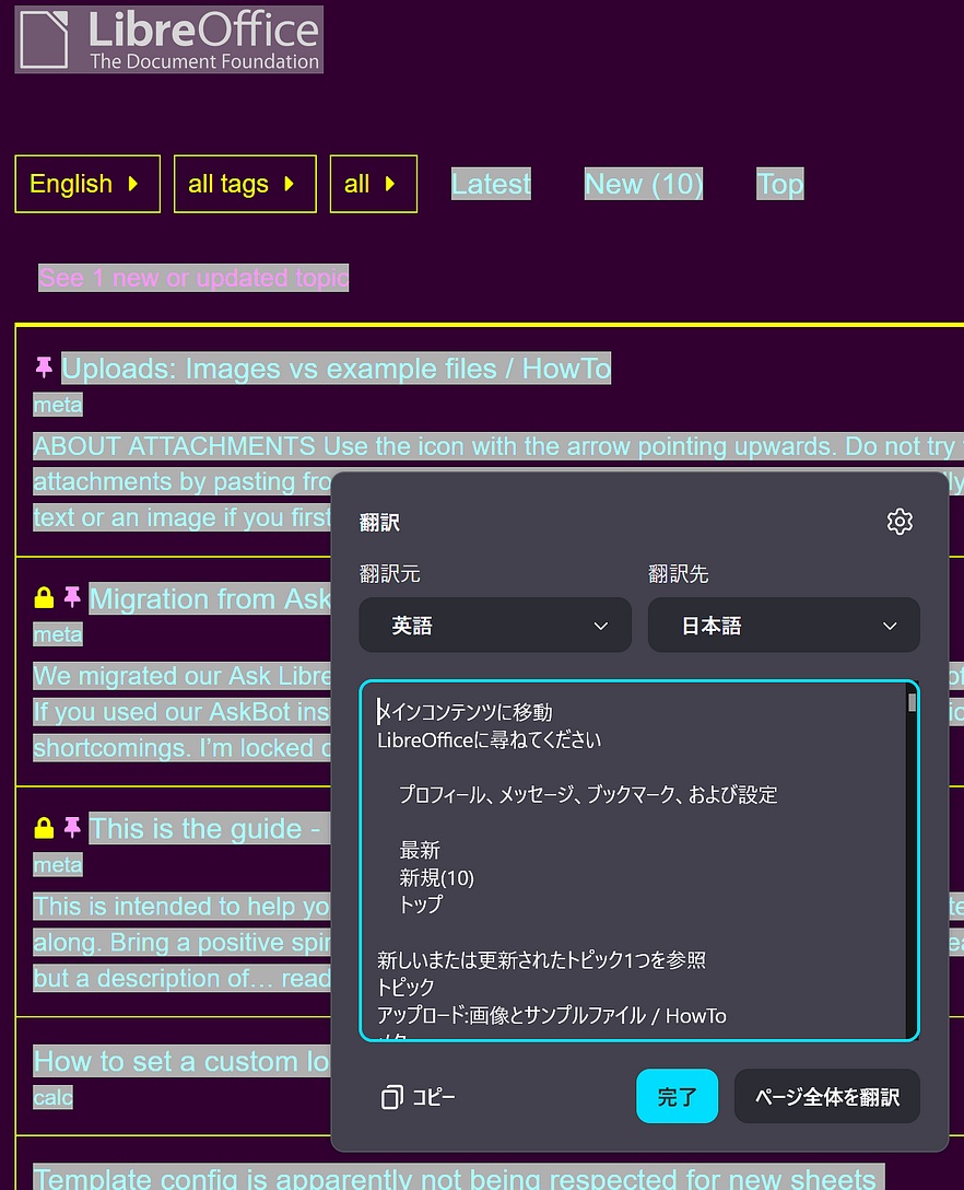 ▼日本語のタブ内だけでは、質問の答えや解決策などが見つからない場合には、英語などの外国語のタブから似たトピックを探して見つけることが出来そう。