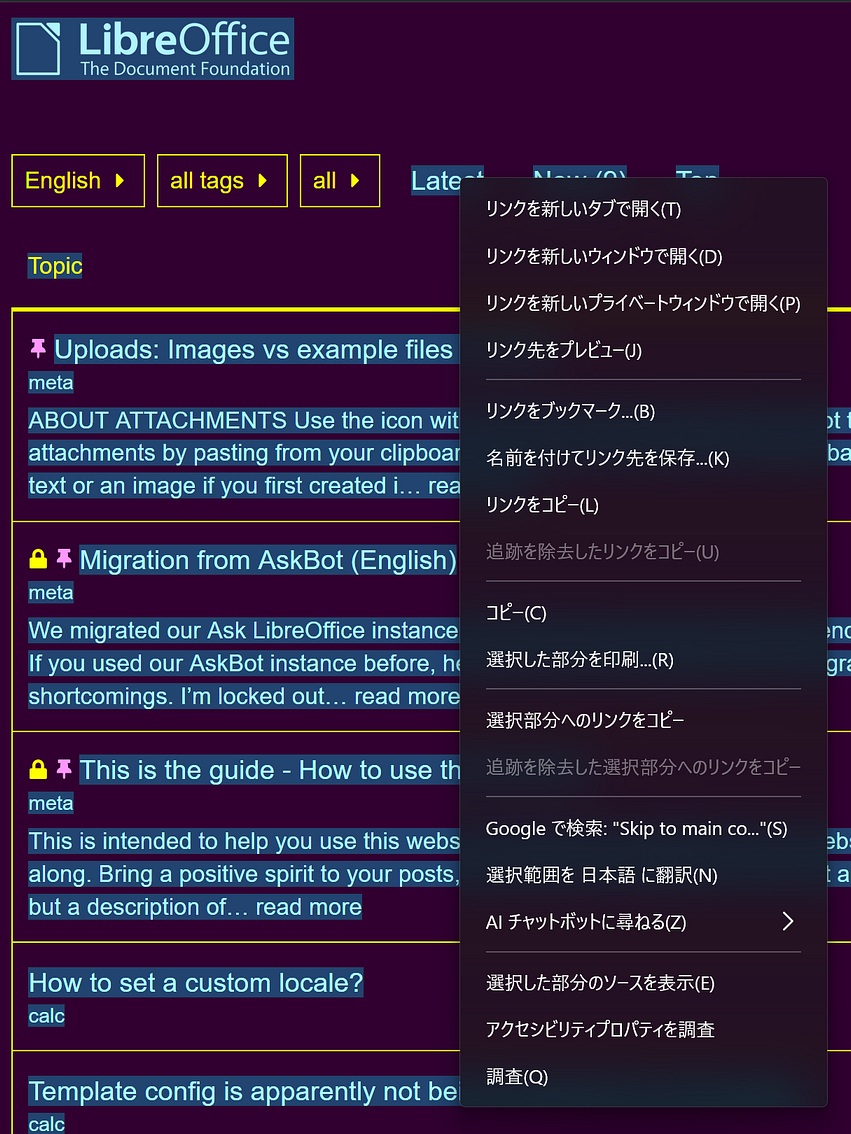 ▼手順5▼反転している上で右クリック▼→この中の「選択した範囲を日本語に翻訳」をクリック