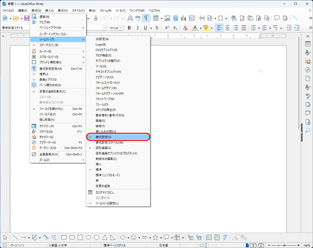 メニューバー[表示]>[ツールバー]>[書式設定]をオフにするといいと思います。