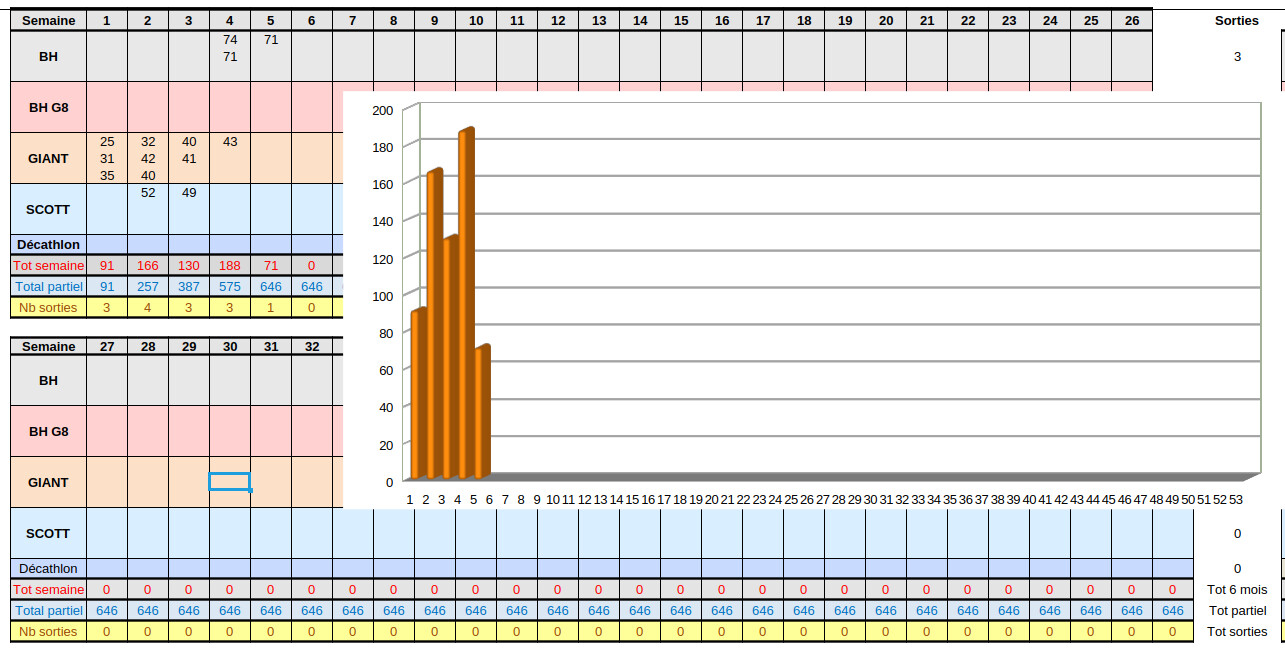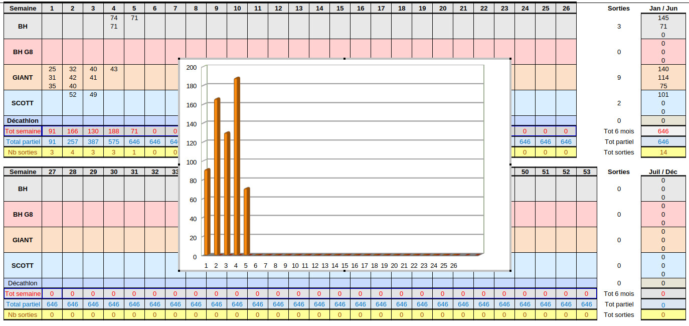 J’ai 2 tableaux (séparés - l’un au dessus de l’autre - pour une meilleure visiblité) de 26 colonnes représentant les semaines d’un semestre.