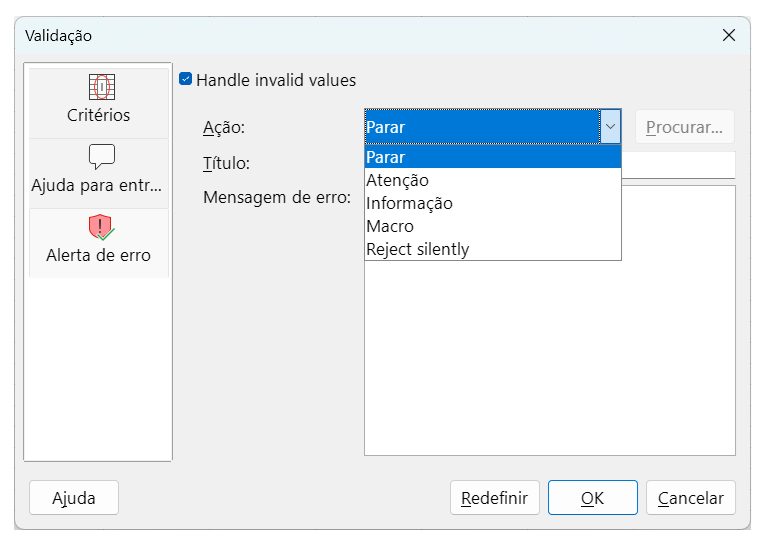 No passado ( por exemplo versão 6.4.7.2 ) quando no Alerta de erro, não deixava marcado, a célula aceitava o digitado, mesmo não estando na Lista de validação.