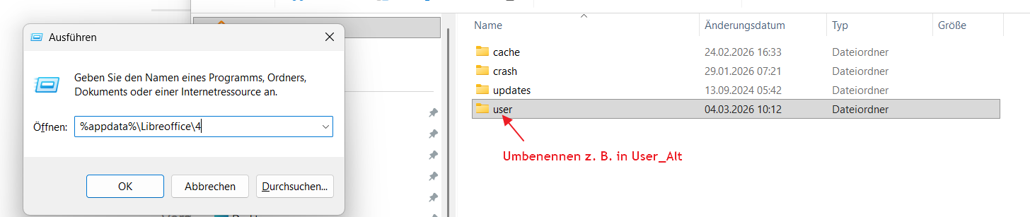 Drücke die Win-Taste+R und gebe ein %appdata%\Libreoffice\4.