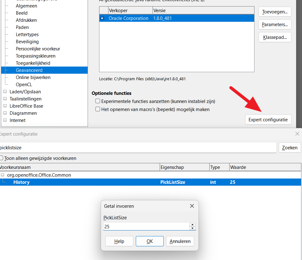 Dit zou het tabblad Extra\opties\LibreOffice\Geavanceerd Maar daar is deze optie niet (meer) te vinden.