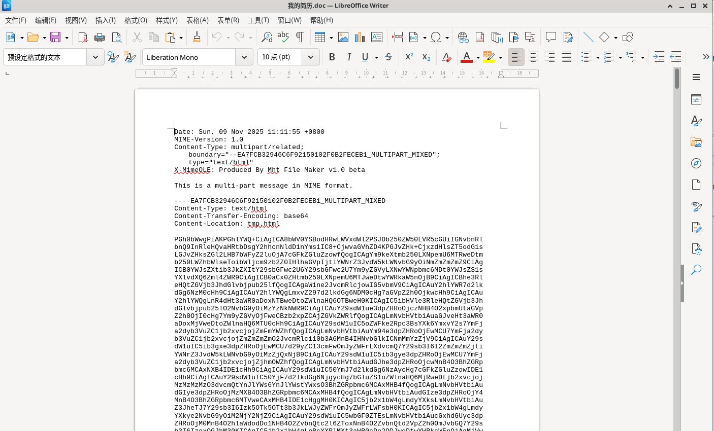 用Writer打开我在https://www.51job.com/导出的简历doc格式显示却变成这样: