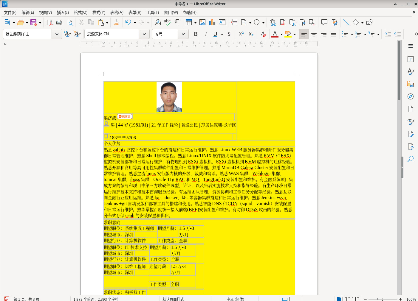 下面是我从https://www.51job.com导出的个人简历doc格式原文件: