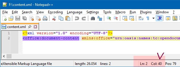 Il nostro traduttore ci segnala l’errore che allego durante il trattamento di un file odt di Writer per la traduzione automatica, credo con Trados: "Errore di lettura. Errore di formato nel file, nel sotto-documento content.xml in 2,174957 (riga, col).